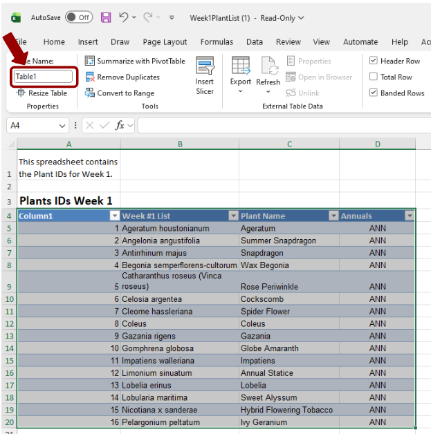 Note: Be careful not to include this sentence in the table. To ensure it is not part of the table, add the ‘end of the table’ text one line below the table. After completing this, you can delete the empty line from the Excel sheet.