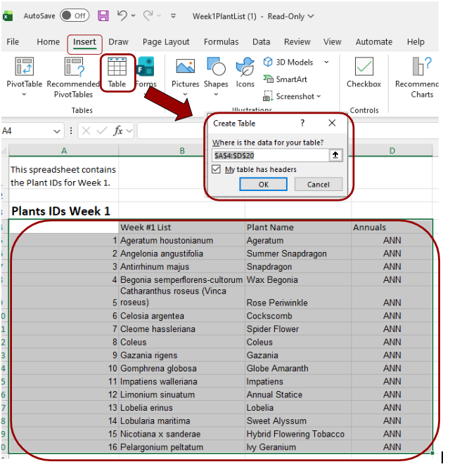 3. Format all content as a table. To do this, select the content you want to include in the table. Go to the Insert tab and select Table. In the Create Table dialog, make sure to check My table has headers, then click OK. This will automatically apply a table style.