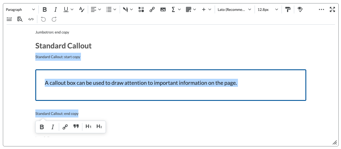 - Customize the pasted element, including removing the "start copy" and "end copy" text.
