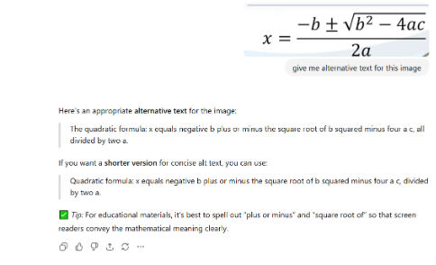 You can also request MathML or LaTeX code, which makes the equations fully screen reader-friendly.